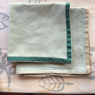 The one on the top had been frayed on the edges, so I trimmed it up and added a new hem.The one on the bottom is what it originally looked like. The repaired napkin is a little smaller than the original, but that's no big deal.